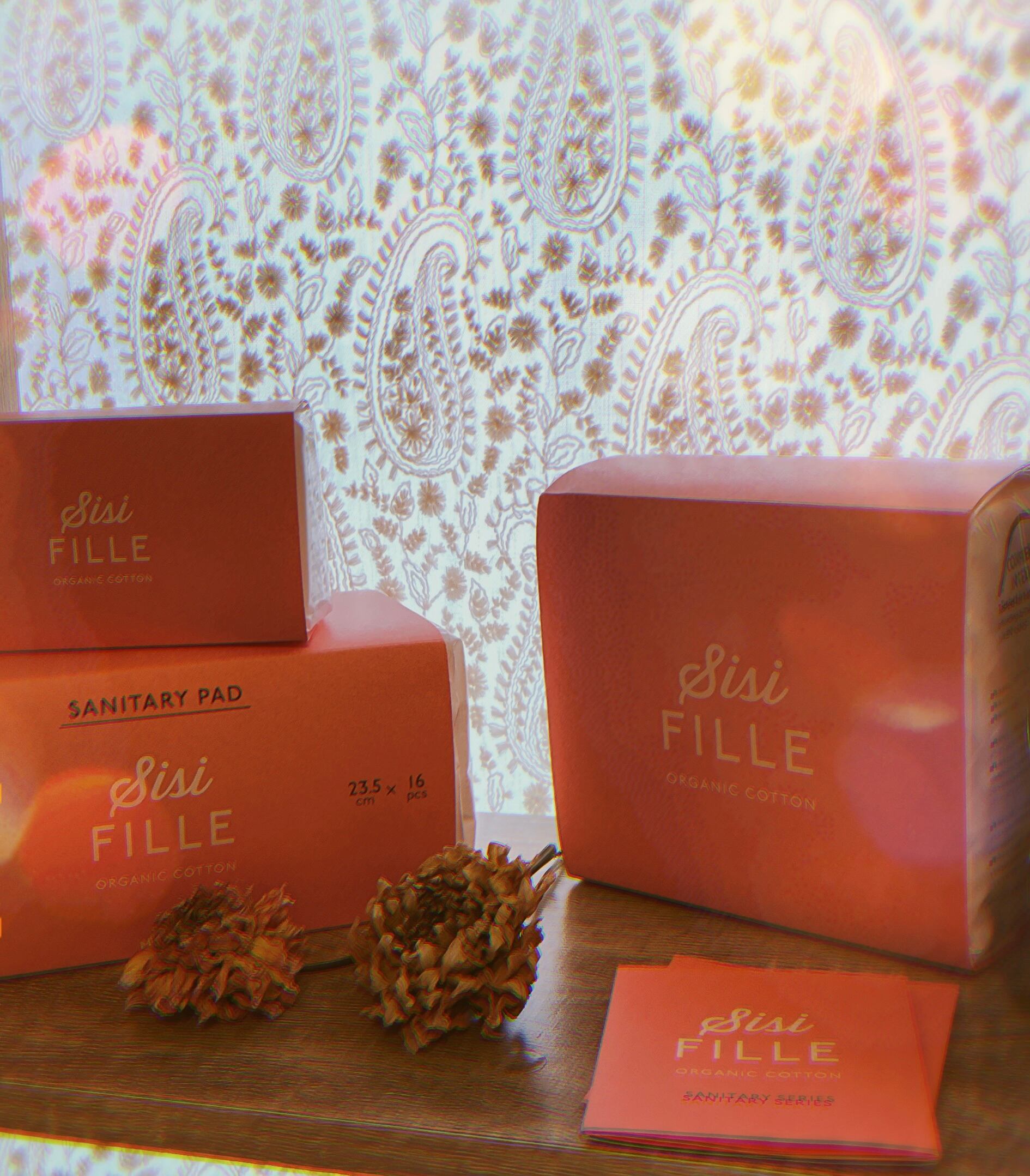 医薬部外品に分類される生理用ナプキンは、表面が白色でなければいけないと薬事法によって定められています。そこで、sisiFILLEの生理用ナプキンのトップシートには酸素系漂白を採用。酸素系漂白剤の成分はもともと自然界に存在する物質なので、塩素系漂白と比べ圧倒的に環境負荷が少なく、人体にも安全です。