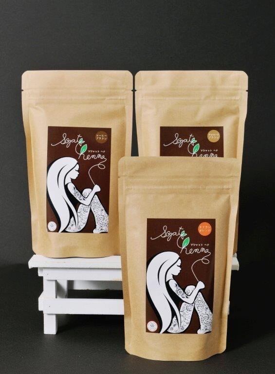 ヘンナ(ソジャット産ヘナ)、ナンバンアイ葉(インデイゴ)、ダイズタンパクを配合しています。